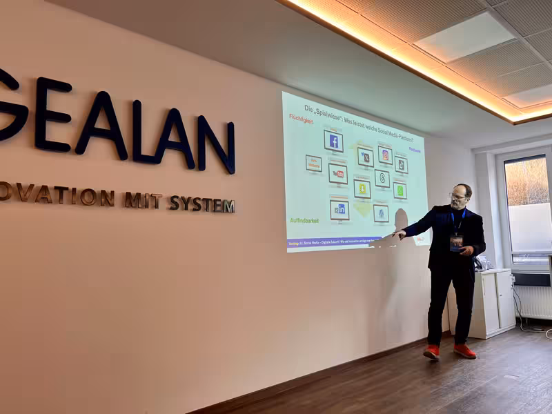 Kai Heddergott, communications consultant from Münster, then gave an overview of the development of common communication and social media tools, which have undergone noticeable change and changed acceptance over the last 20 years. For the guests of the GEALAN Entrepreneur Day, he had helpful tips in his luggage on which channels they should concentrate and with what effort and how they could also benefit from the support of artificial intelligence.