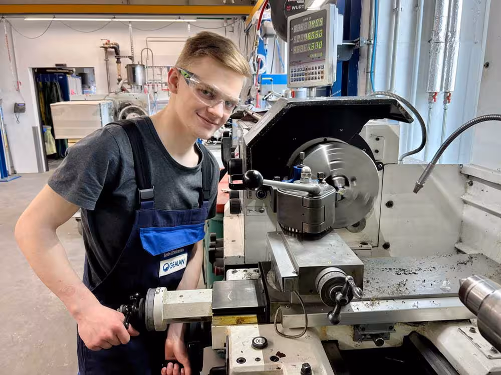 Matthias Gulau lässt sich am GEALAN-Standort Oberkotzau zum Werkzeugmechaniker ausbilden – heißt: an der Drehmaschine, beim Fräsen und Bohren. „Mein Vater ist auch Werkzeugmechaniker, das Interesse an dem Beruf wurde mir quasi in die Wiege gelegt“, erklärt der junge Mann seine Berufswahl. Bei GEALAN teilt er nicht nur die Ausbildungsrichtung, sondern auch die Leidenschaft fürs Technische mit Jonas Bingart: „Früher bin ich viel Fahrrad gefahren und hab an den Rädern herumgeschraubt. Daher war für mich schnell klar, dass ich mir einen Beruf suche, in dem ich an Metall arbeiten kann.“ Anhand von Zeichnungen fertigen die angehenden Werkzeugmechaniker Präzisionsteile an. Das praktische Arbeiten wechselt sich, wie üblich, mit der theoretischen Ausbildung in der Berufsschule ab. „Ich hab viele Praktika im Metallbereich gemacht. Und zwar in ganz unterschiedlichen Firmen – und nirgends hat es mir so viel Spaß gemacht wie bei GEALAN. Daher bin ich jetzt hier“, beschreibt Daniel Nürmberger, dass ihm nicht nur die Ausbildung sehr zusagt, sondern auch das Betriebsklima.