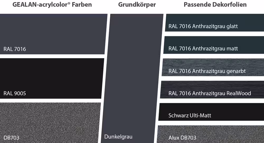 Dunkles Profil perfektioniert Premium-Oberfläche GEALAN-acrylcolor®