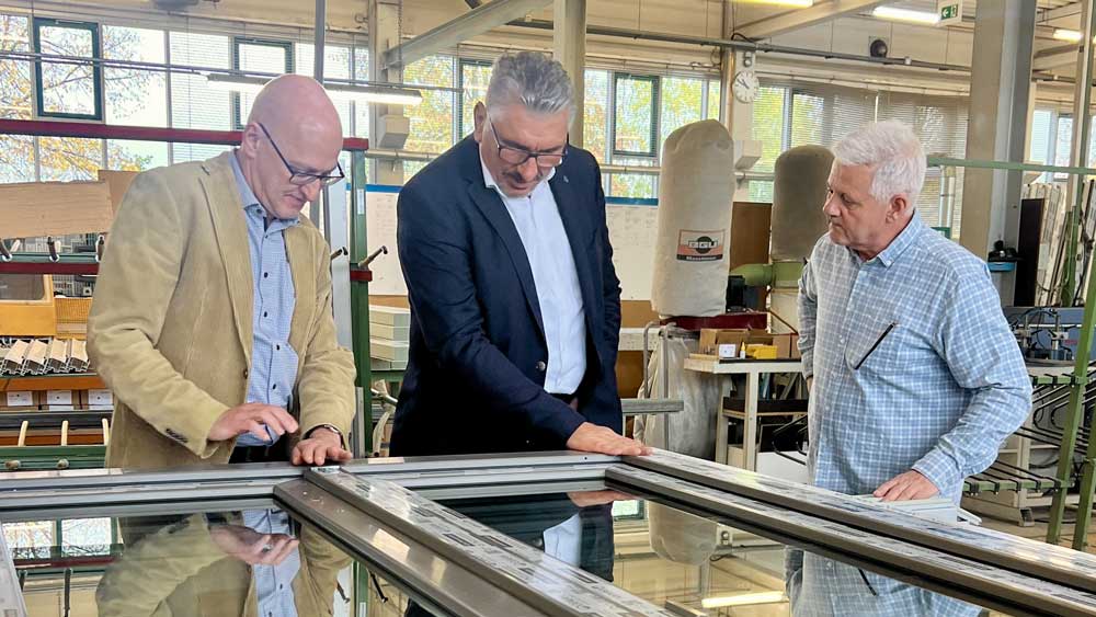 Begutachten der gemeinsamen Lösungen am TREFZ-Standort Großweitzschen mit (v.l.) Geschäftsführer Volker Trefz, GEALAN-Geschäftsführer Ivica Maurovic und TREFZ-Betriebsleiter Rolf Weber (Quelle: GEALAN)