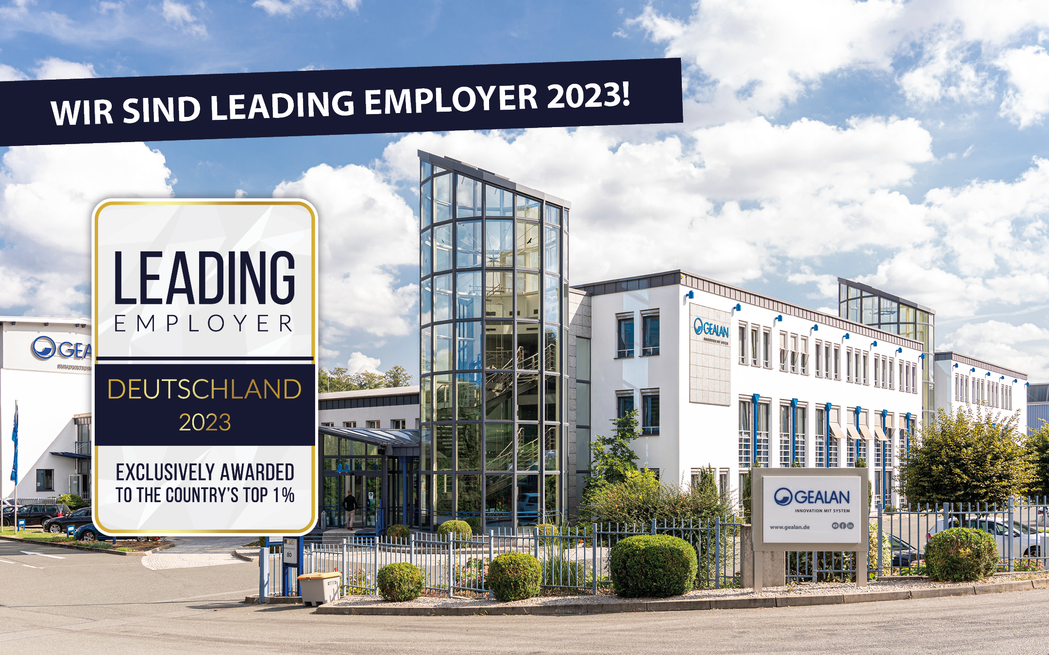 GEALANs Engagement als Arbeitgeber wird erneut gewürdigt: Wie im letzten Jahr bekommt der Kunststoffsystemgeber auch für 2023 die Auszeichnung zum LEADING EMPLOYER. Damit zählt GEALAN im zweiten Jahr in Folge zu den Top 1% aller Arbeitgeber in Deutschland.