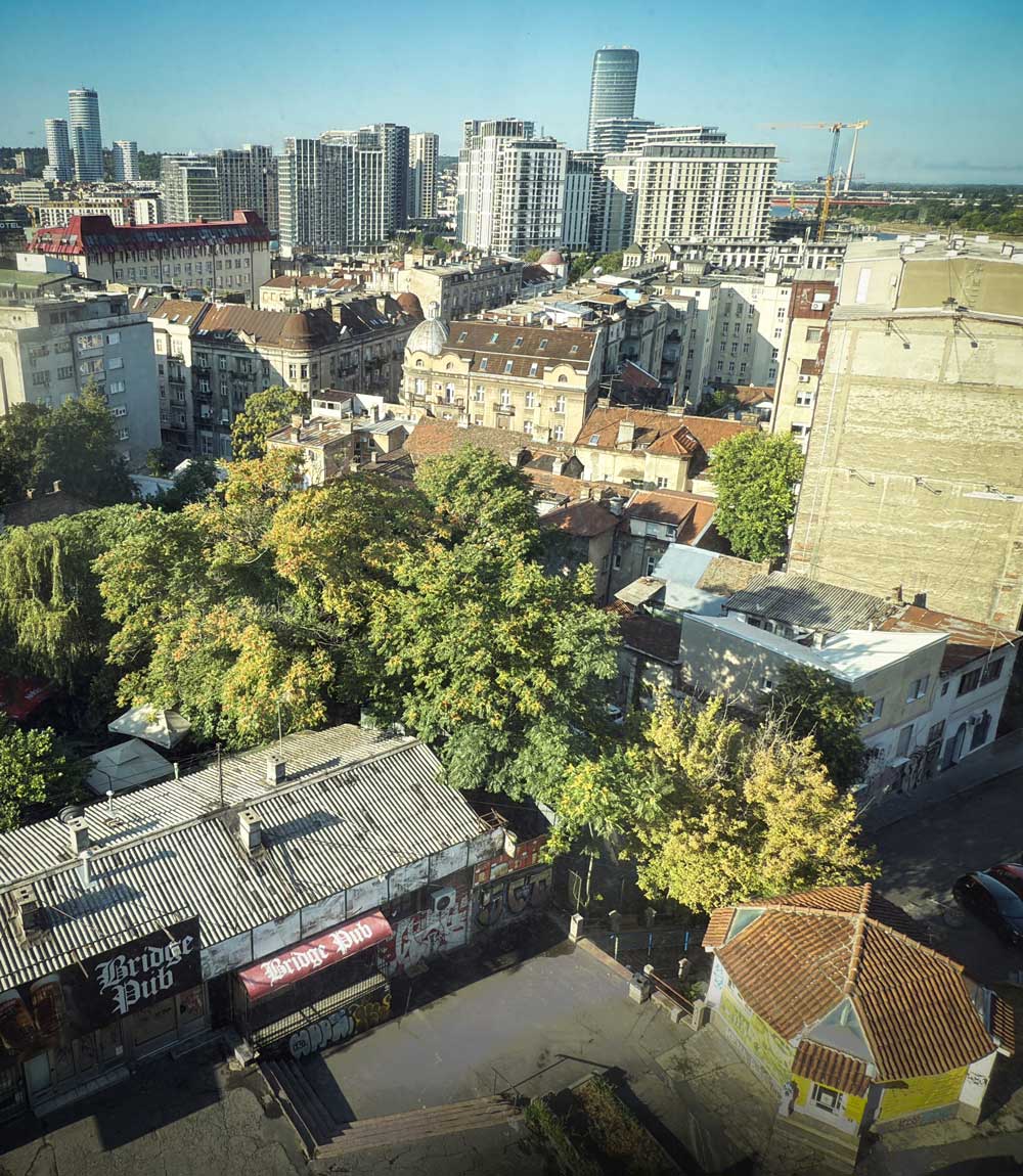 Belgrad erwacht. In den Splavovi, den schwimmenden Nachtklubs am Ufer der Save, sind die Partys vorbei. Die Morgensonne taucht die Stadt in weiches Licht, in dem sich historische und neue Gebäude unversöhnlich gegenüberstehen. Da ist einerseits die Altstadt mit Jugendstil- und Gründerzeitbauten – manche schmuck hergerichtet, andere, abseits der prächtigen Einkaufsstraße Knez Mihailova ulica, Sanierungsfälle. Der Kalemegdan-Park mit Belgrads historischer Festung schmiegt sich von der Mündung der Save in die Donau hügelartig zur Altstadt hinauf. Hram Svetog Save, eine der größten orthodoxen Kirchen der Welt, dominiert mit ihrer monumentalen Kuppel die Silhouette. Bunte Streetart schreit von den brutalistischen Betonsilos des urban-kreativen Kulturzentrums Silosi im ehemaligen Getreidespeicher des Hafens. Die verglasten Zweckbau-Fassaden aus der sozialistischen Ära Jugoslawiens verblassen hingegen zusehends. Völlig konträr dazu erhebt sich Beograd na Vodi oder Belgrade Waterfront, ein Retortenstadtteil – futuristisch, monströs. Für das milliardenschwere Prestigeprojekt der serbischen Regierung und eines Investors aus den Vereinigten Arabischen Emiraten wurden alle geltenden Bauvorschriften außer Kraft gesetzt. Geplante Bauzeit: 2015 bis 2045. Kula Beograd – 2024 fertiggestellt, 168 Meter hoch, 42 Stockwerke, 190 Hotelzimmer und 220 Luxus-Apartments – soll das Wahrzeichen des neuen Belgrads sein. Und Waterfront soll die größte Shoppingmall des Balkans werden. Waterfront ist aber auch ein Symbol für Serbiens innere Zerrissenheit: Befürworter hoffen auf ein attraktives Stadtbild und wirtschaftliche Blüte. Gegner prangern Korruption im großen Stil an.